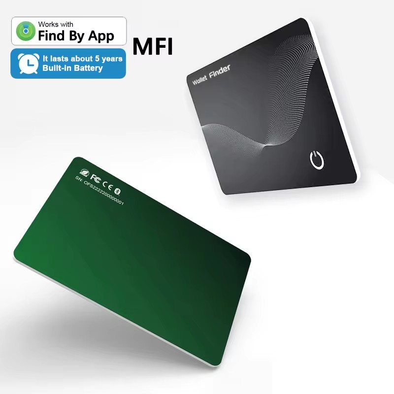 *Card Finder *Work with APPLE FIND MY directly *Support system: Apple iOS 7.0 and above *Material: PVC *Chipset: ASR *Color: black *Bluetooth version:V5.2 *Volume: 90-100dB *Range: 30M *Waterproof: IP67 *Battery Capacity: 110mAh Li battery (Wireless rechargeable) *Product Size:54*85*1.8mm *Package: paper box *Certificate: Work with Apple Find My |